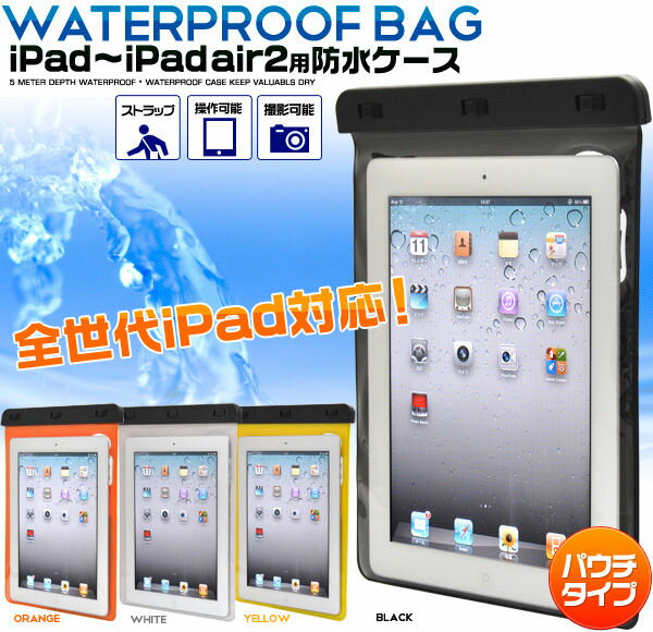 <スマホケース・スマホ防水ケース>海水浴や入浴に♪ iPad用防水カラーケース イエロー1点【wm-746-02】