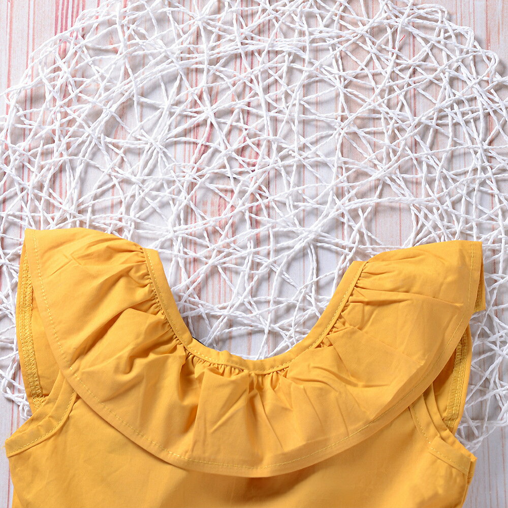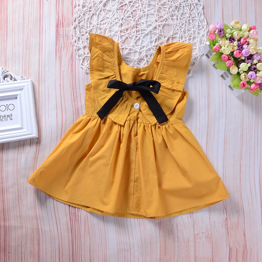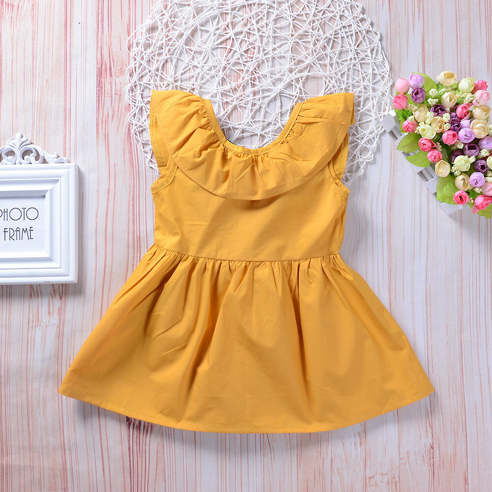 送料無料ワンピース ノースリーブ ラッフルカラー バックリボン 子供用 キッズ フレアスカート 背中ボタン おしゃれ 可愛い かわいい ガーリー シンプル 無地 女の子 女児 子供服 子ども服 こども服 90cm 100cm 110cm 120cm 13