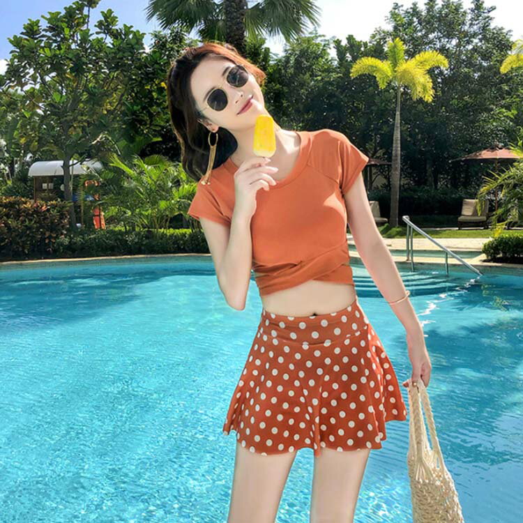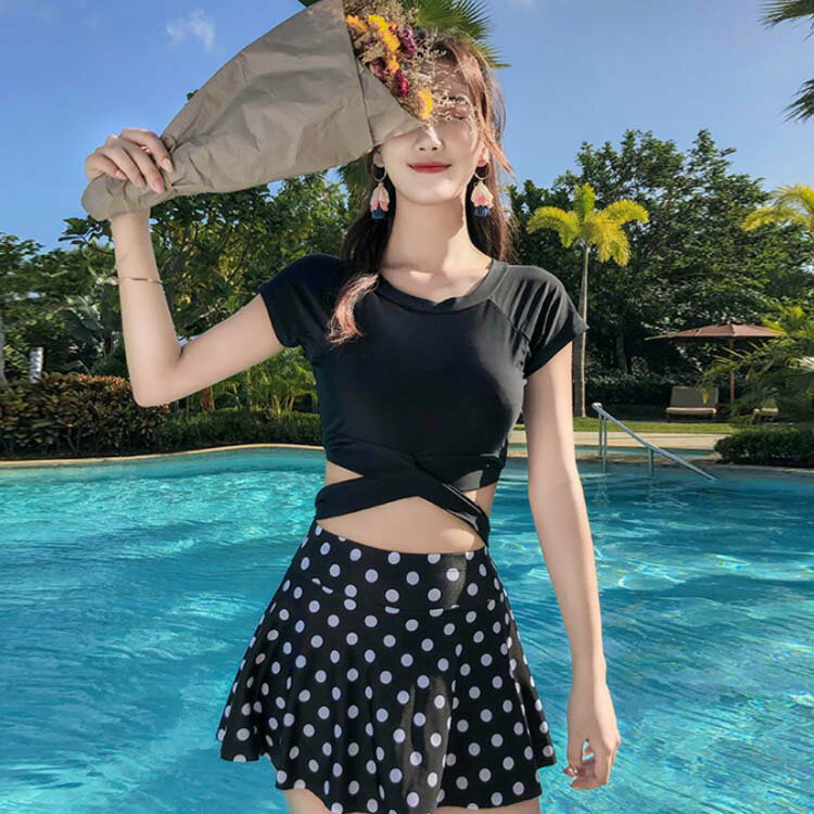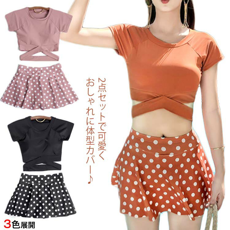 送料無料 水着 セットアップ レディース スカート Tシャツ 2点セット お洒落 体型カバー 大きいサイズ 大人可愛い パッド付 大人女子