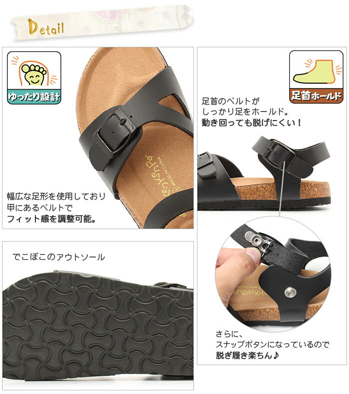 【最大350円OFFクーポン】KenKenPa(ケンケンパ) コルク サンダル ブラック 他全4色(KP-018)キッズ&ジュニア(子供用)2017年モデル 男の子 女の子 学校 幼稚園 保育園 脱ぎ履き 簡単 らくらく プレゼント